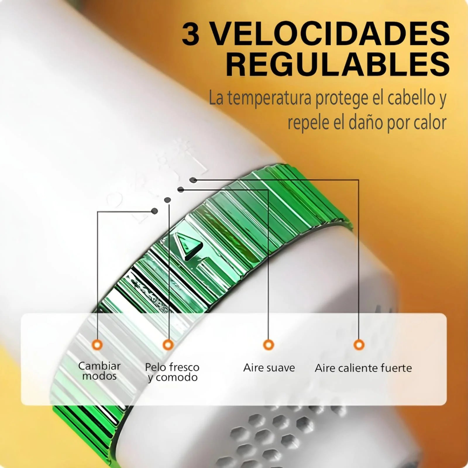 ✔️Ofrece 3 velocidades regulables de calor, brindándote la flexibilidad de controlar el tiempo de secado y peinado según tus necesidades.