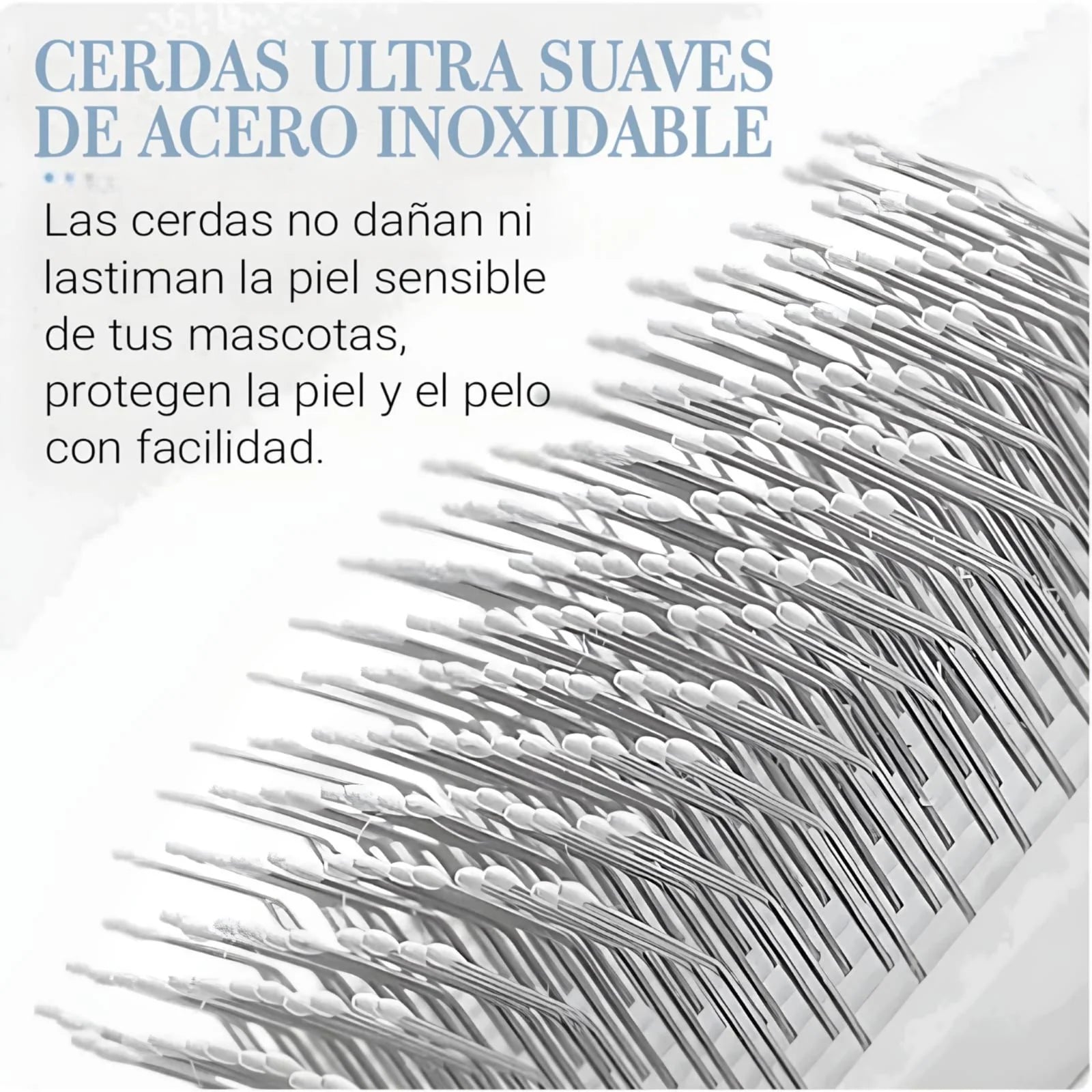 ✔️ Cepillo de cerdas ultras suaves que se deslizan sin esfuerzo a través del pelaje de tu mascota, eliminando enredos y pelo suelto sin causar irritación o incomodidad.